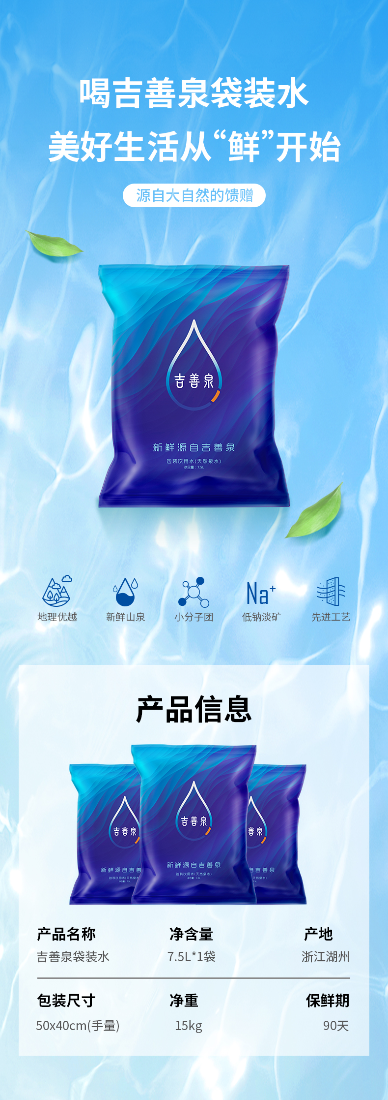 源自安吉竹海的饋贈,良好的生態環境,孕育出清冽甘甜的口感,滴滴鮮活,“袋”給全家泉心泉意的愛。